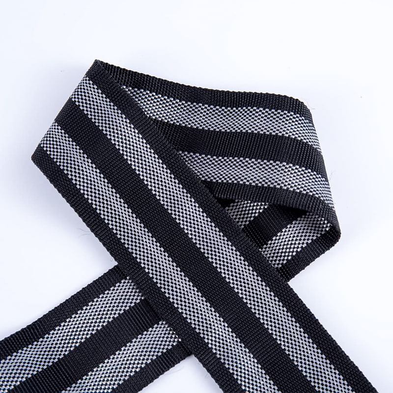 Processus Features: Filamentum FDY et DTY bis tinctum compositum tinctum sunt praecise intertextae ad structuram cinguli excavendam uniformem et stabilem efficiendam. Orae teretes et secures finiendae sunt, ne torquatus vel deformatio in usu sit.